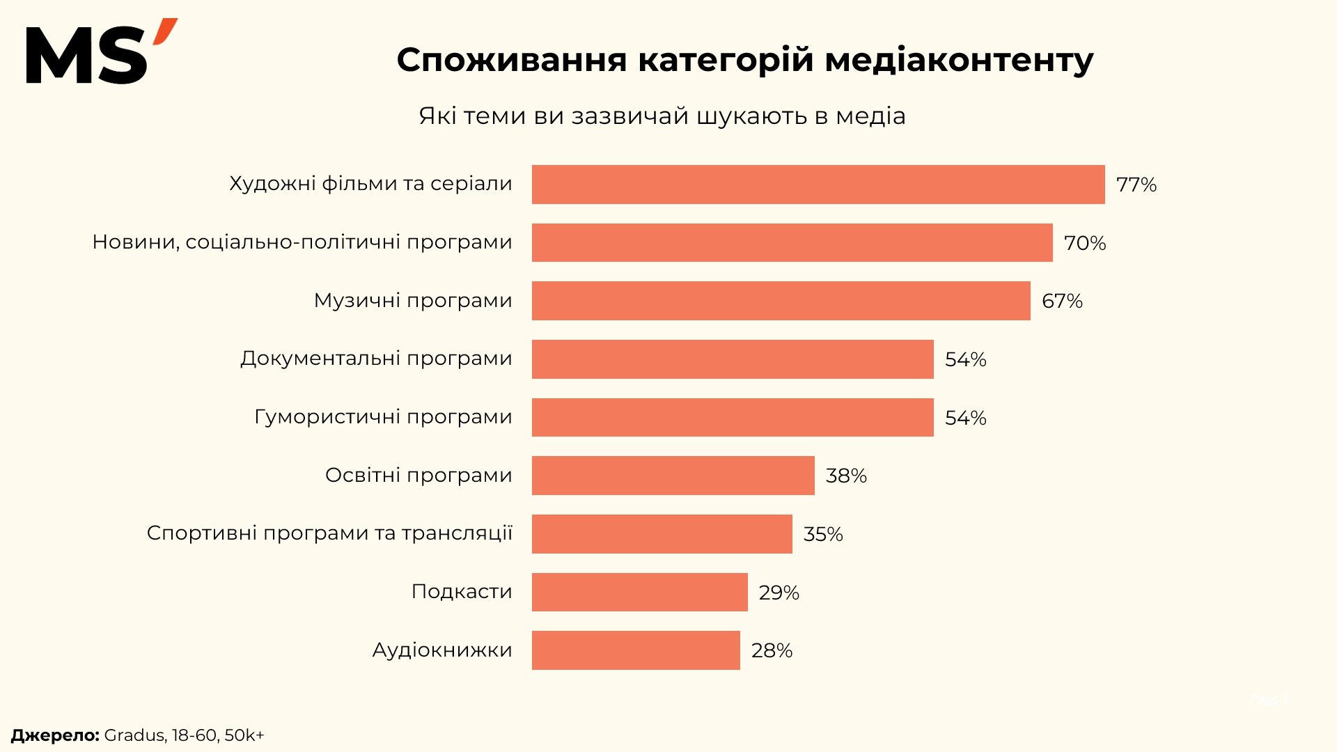 Такі дані підтверджують, що сучасний медіаспоживач — це людина, яка шукає не лише розвагу, а й зміст, балансуючи між дозвіллям, інформуванням і саморозвитком.