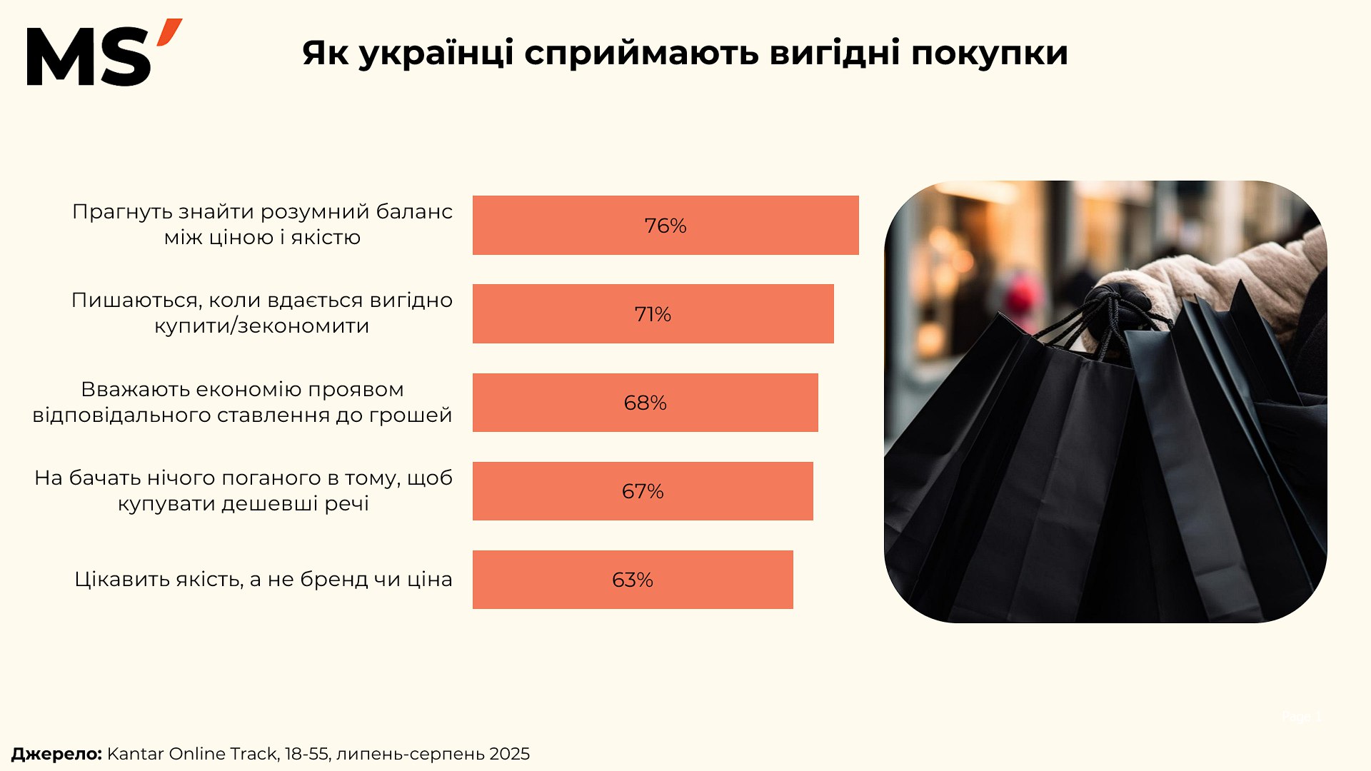 71% покупців зізнаються, що відчувають задоволення, коли їм вдається вигідно придбати товар або заощадити. Така поведінка свідчить про те, що економія все частіше сприймається як досягнення, а не вимушений крок.